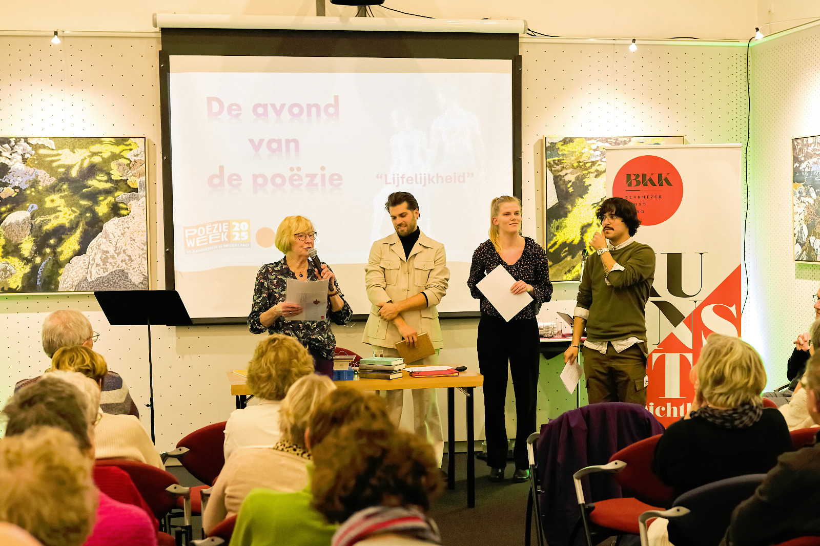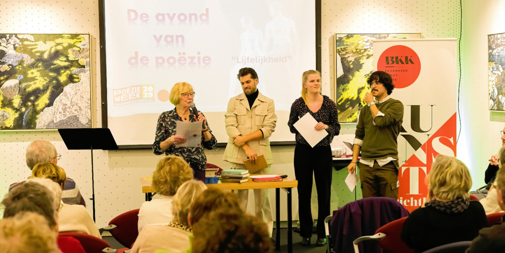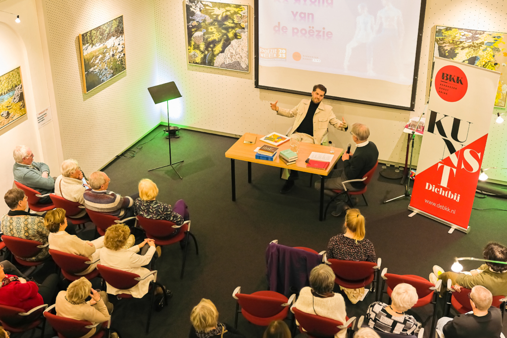 Alle dichters lazen ook nieuwe gedichten voor die zij speciaal hadden geschreven rond het thema ‘lijfelijkheid’. De zaal zat vol en luisterde aandachtig.